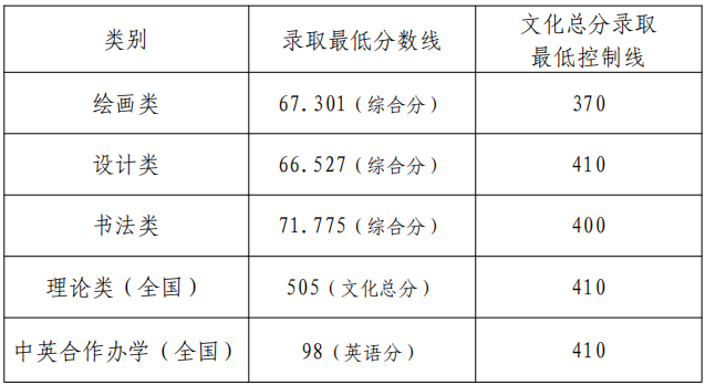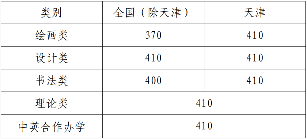 三、天津美术学院2022年本科录取文化最低分数线(华侨港澳台)