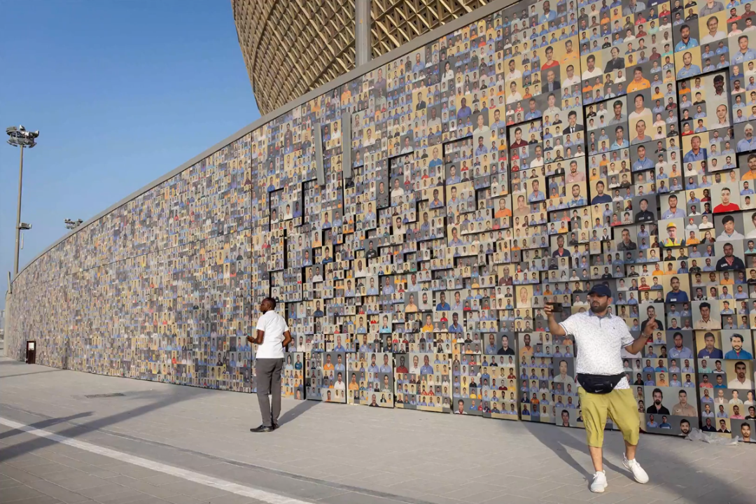超6750人死亡!卡塔尔世界杯光鲜的背后,是工人们的血和泪 | 卡塔尔世界杯工人纪念塔