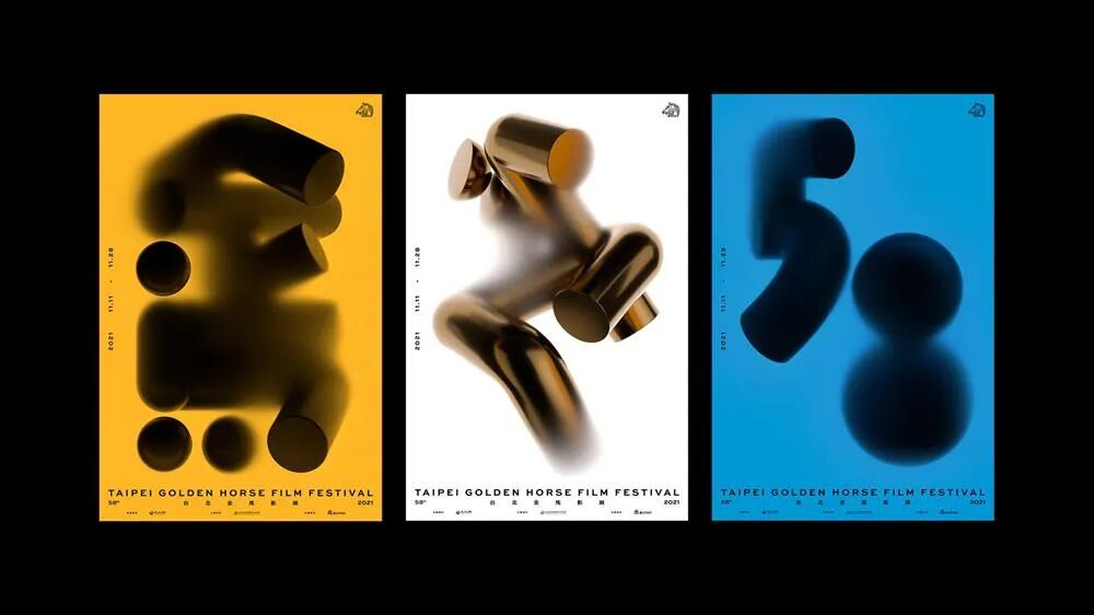 去年,为了呼应“焦距”主题,设计团队Bito以“电影镜头”为创作灵感,在3款主视觉系列海报设计中,特意不借用电影影像为主要元素,转而以“单一镜头”和“连续镜头”的推进轨迹,诠释奖座、58数字与金马二字,借局部模糊与清晰的递嬗变化,回扣镜头对焦过程中的动态感。