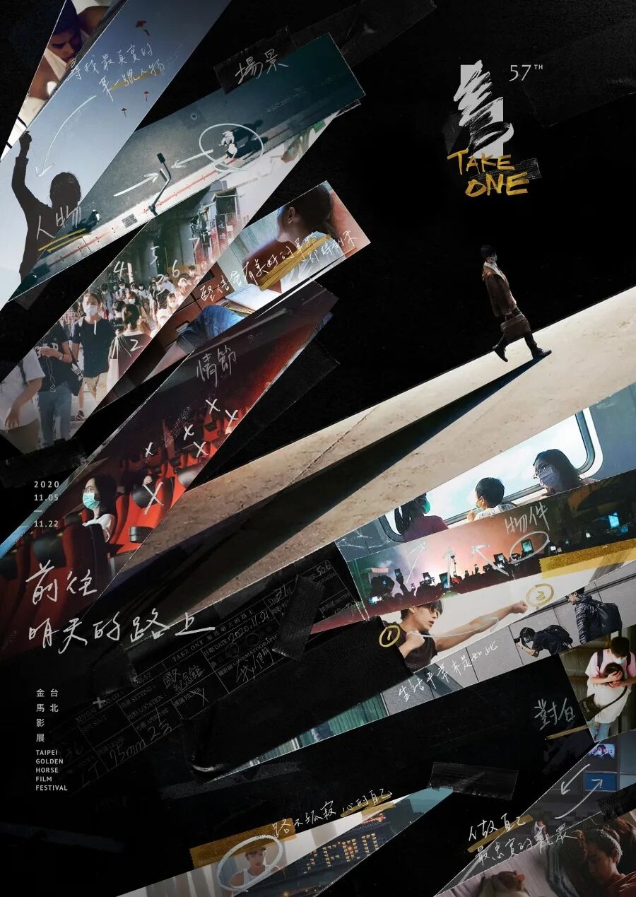 金马57主视觉集结当年上半年来自大众的生活摄影,并邀请前年入围金马奖的演员提供他们日常纪录。海报上将电影中出现的场景、人物、情节、对白、物件等手写笔记,与拍摄现场的大力胶等痕迹,转化成为视觉元素。