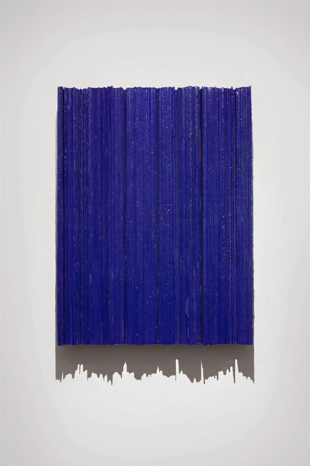 艺术家田龙玉把钢锯的锯齿同样切割成如同“天际线”的城市剪影,组装出一个类似耙子的工具,在近15公分厚的各色颜料上“犁”出凹凸的沟壑。“《墒》的英文意思是精神疤痕。”当作品被挂上墙壁,射灯的光线照耀下,本来抽象的凹凸,投影显现出“城市天际线”的影像。田龙玉以身体的劳作形成的作品《墒》系列作品,既不是抽象的,也不是具象的,也不是传统意义的雕塑作品。从创作语言和方法论颠覆了程式化的创作方式,突破边界。