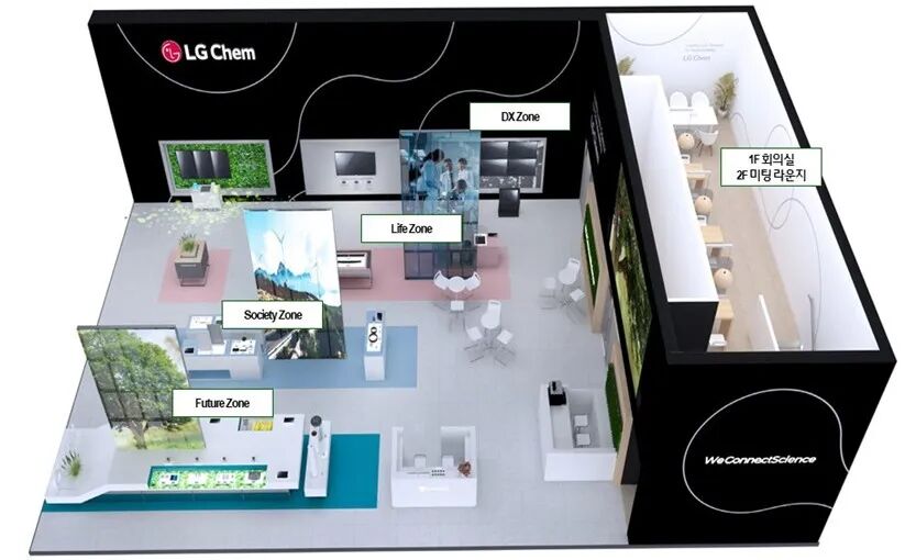 应用全新VI(Visual Identity)的LG化学展位