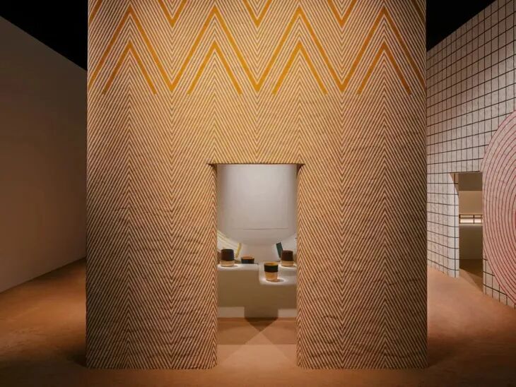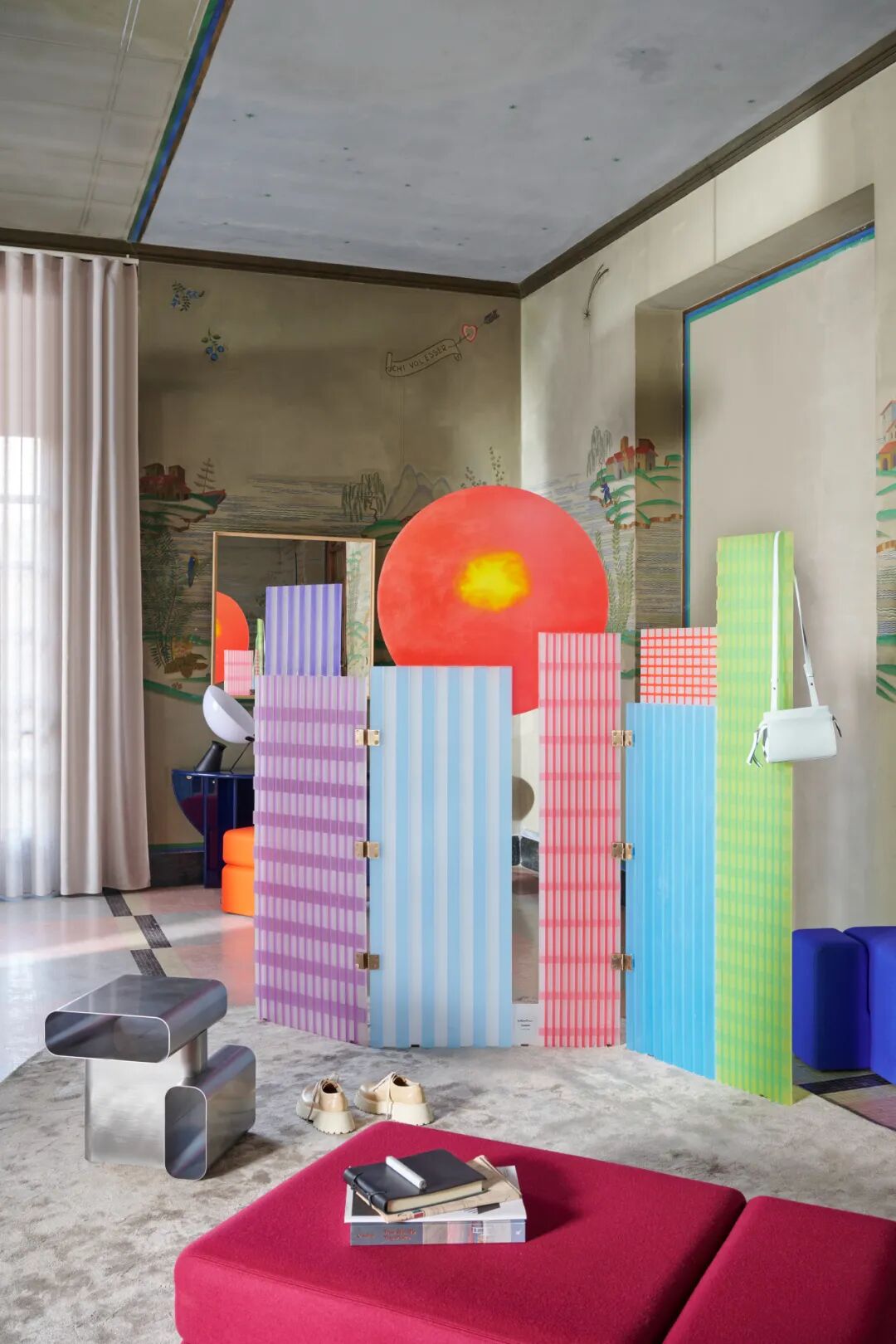 SolidNature 邀请了国际建筑公司 OMA ,在 Lavanderia 大楼五个不同房间中的设计了装置展示,斑斓的色彩、变幻的线条、叠加的几何体,都展示着自然与瑰石之间的平衡与多变。
