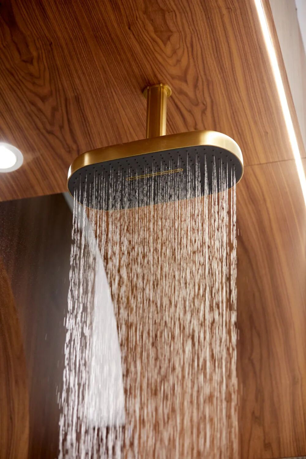 设计师还细致的考虑水流设计,通过强大的冲淋设备和丰富的冲淋水型选择带来冲洗、按摩和放松的沉浸式淋浴体验,将款式与功能完美结合。