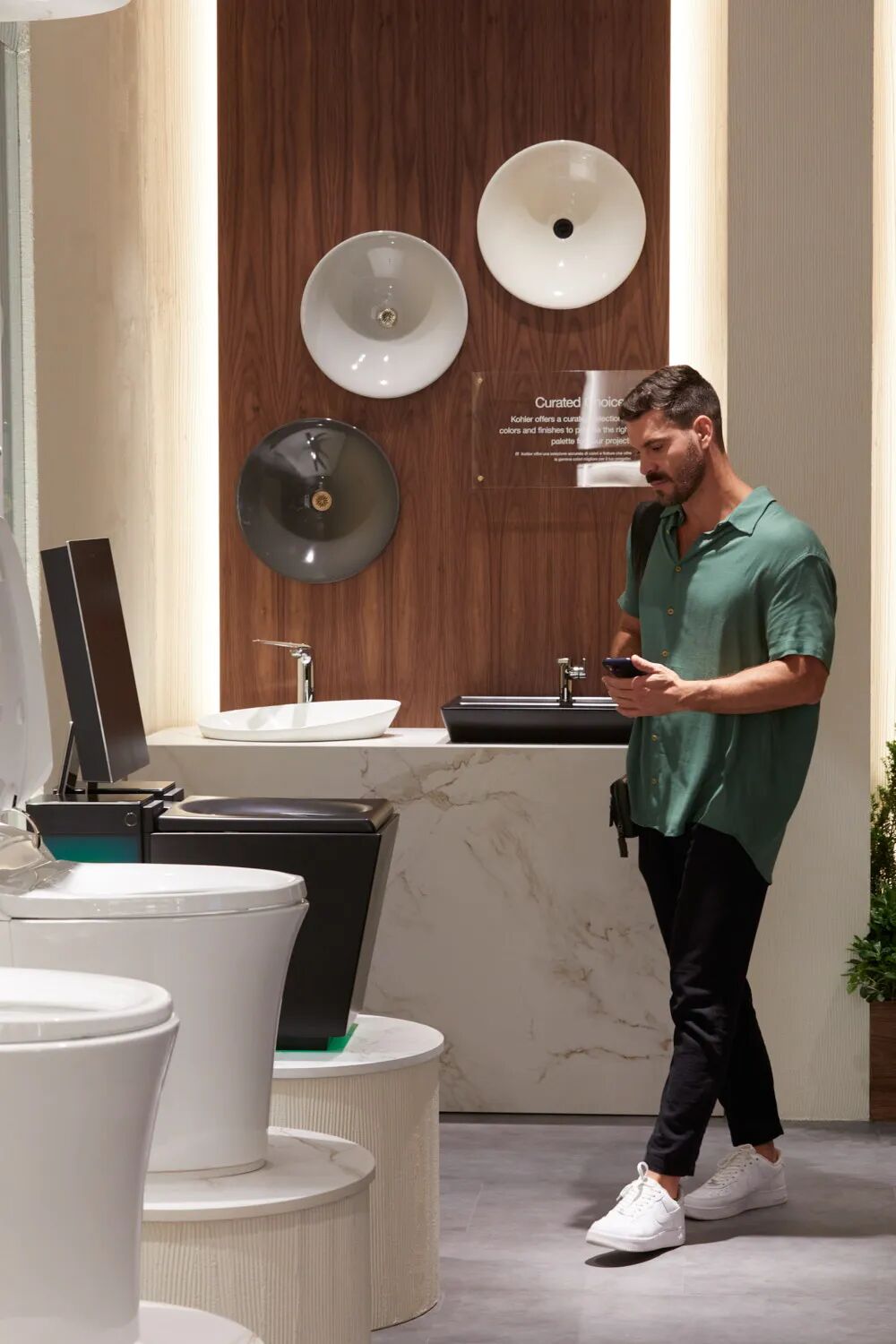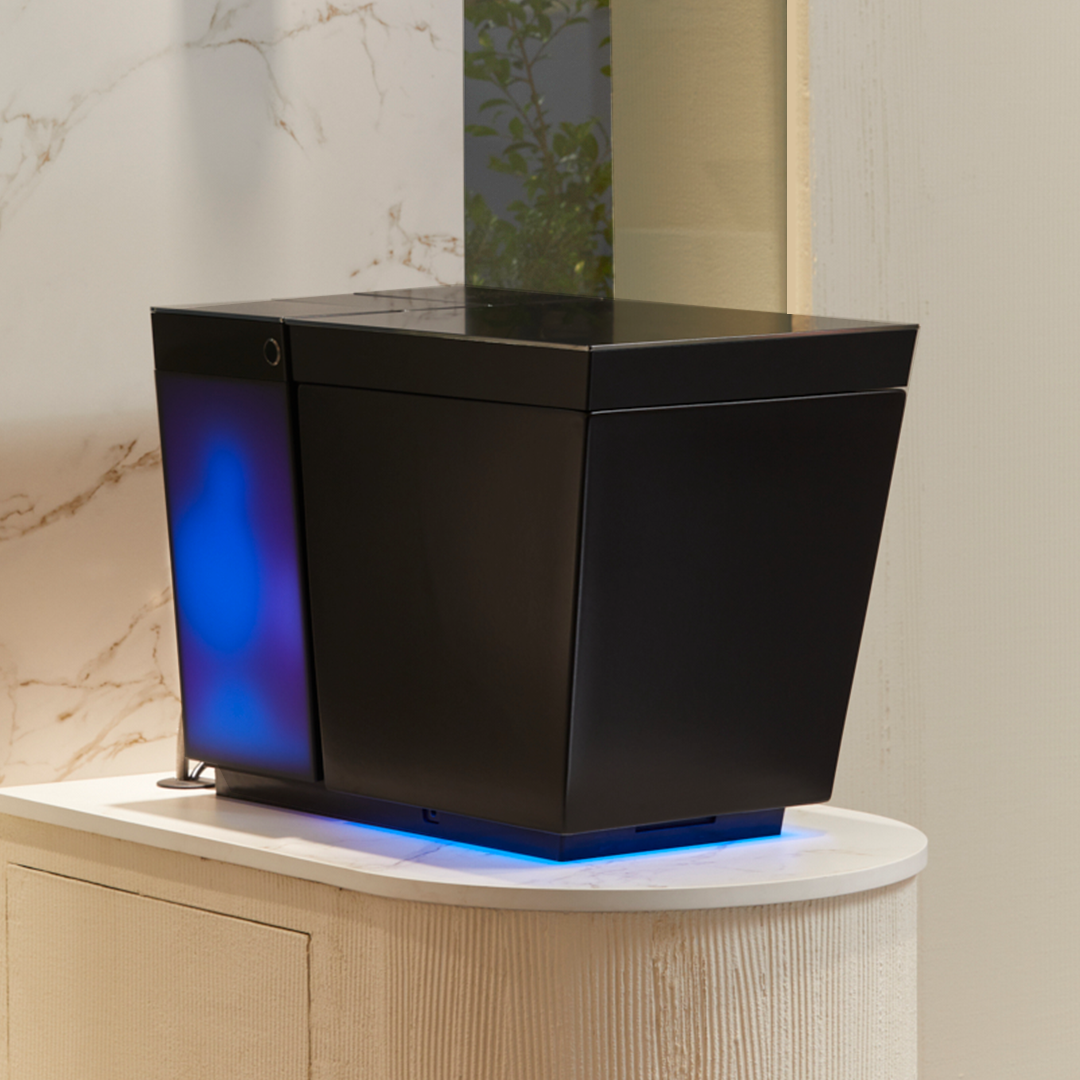 实现自我迭代更新的纽密 2.0 智能座便器,维亚、尚思和星朗三款智能座便器,更是通过智能、音乐、灯光等设计,塑造出不同的卫浴空间氛围。