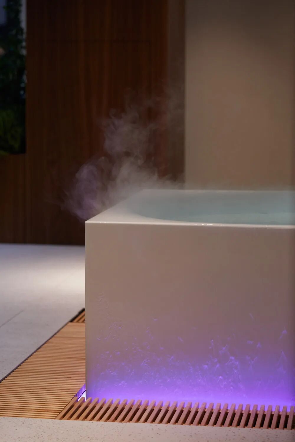 朗月独立系列浴缸就更有看点了,它的设计灵感来源于日本森林浴,采用无边溢流的循环水流设计,可准确调节水位和所需的温度,使水流、灯光、雾气和香氛交织出令人陶醉的全感官型的沉浸式智能沐浴体验。