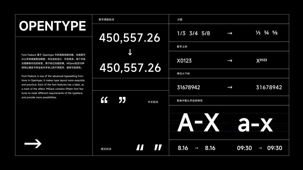 小米在 MIUI 13 发布会上公开了一款全新的系统字体——MiSans,可免费下载及商用。与品牌调性相一致的极简设计,更有利于屏幕显示,且平直有力;包含 10 个字重,同时具有丰富的 Opentype 特性,比如,连字符的高度可以自动适配大小写字母,让排版更细腻。