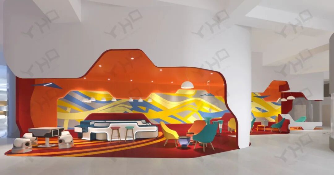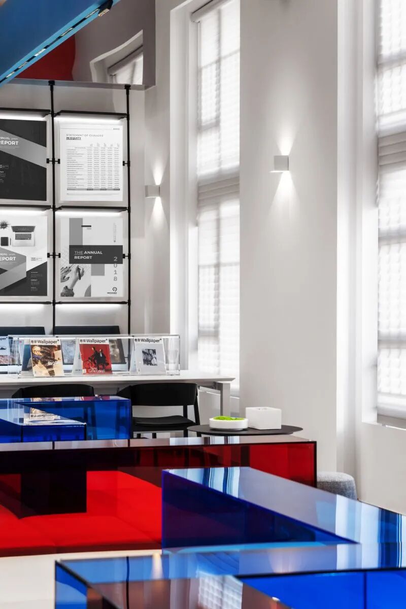 设计主题源于电影《信条》,提炼出时间、光、红、蓝等元素。从包豪斯和造型师的现代主义起源,如空间的色彩、构图和线条的应用,“熵增运动”和“熵减运动”的概念以红色和蓝色表达。