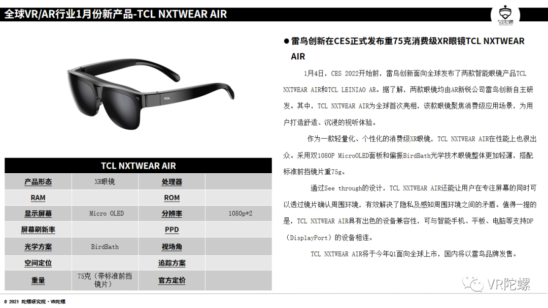 以下为2022年1月完整月报(下载pdf版可在VR陀螺微信公众号后台回复“2022年1月”获取)。