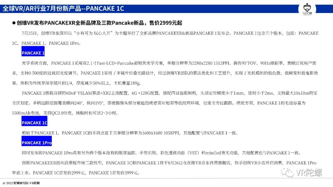 硬件方面,7月共有2款VR/AR新品发布,一是YVR正式发布Pancake方案VR一体机YVR 2;二是创维VR发布新品Pancake系列,包含Pancake 1、Pancake 1C 以及Pancake 1Pro。同时还有1款AR产品公布发售信息,Magic Leap2将于9月30日发售。本月的VR硬件新品都采用Pancake光学方案,Pancake光学方案已成为大势所趋。