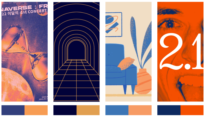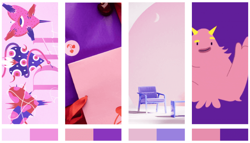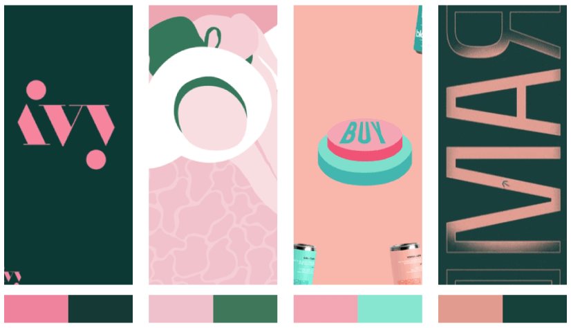 汽油绿+柔和的粉红色/桃红色:汽油绿是一种较为深沉但是饱和度不高的柔和绿色,和较浅的粉色能够形成足够的对比,但是在视觉上不会给人以压力,这种设计在网页、UI、UX 当中非常流行。