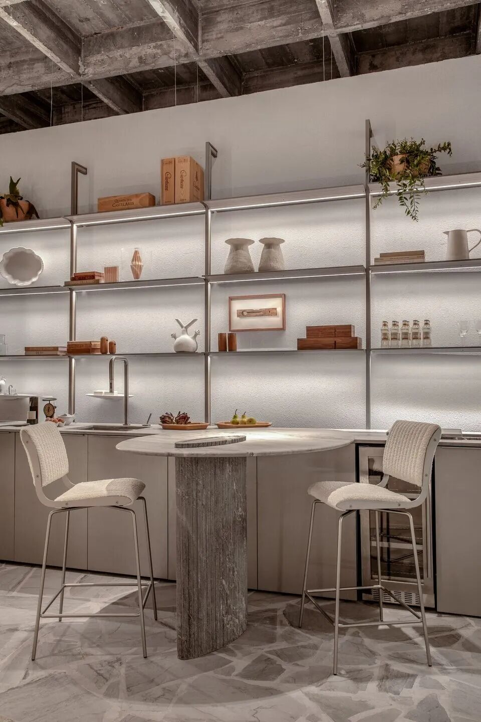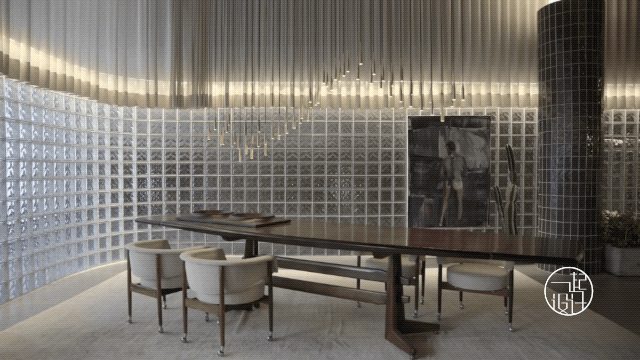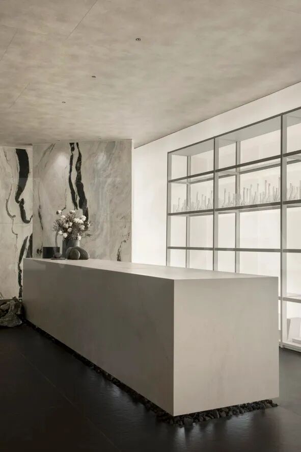 大理石采用的是一种名为熊猫大理石的材质,黑白配色正符合里奥的单色几何空间。