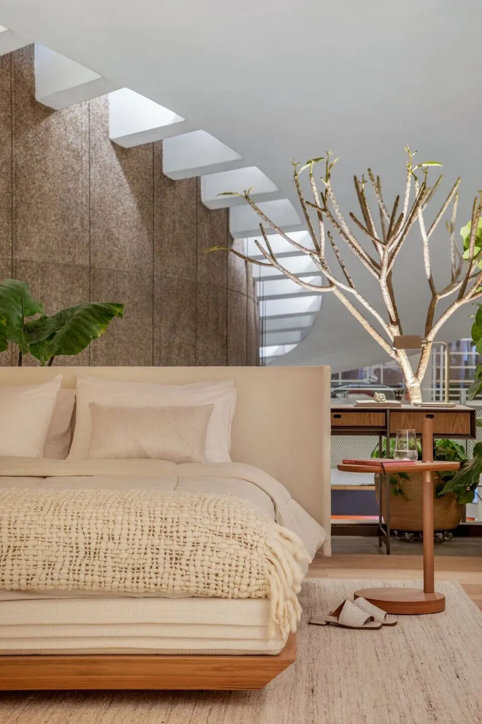 就像森林会寻求自我平衡,人类也可以好好的修复自己,在这样的念想下,卢卡斯设计了一个极简主义的亲生物样板间。