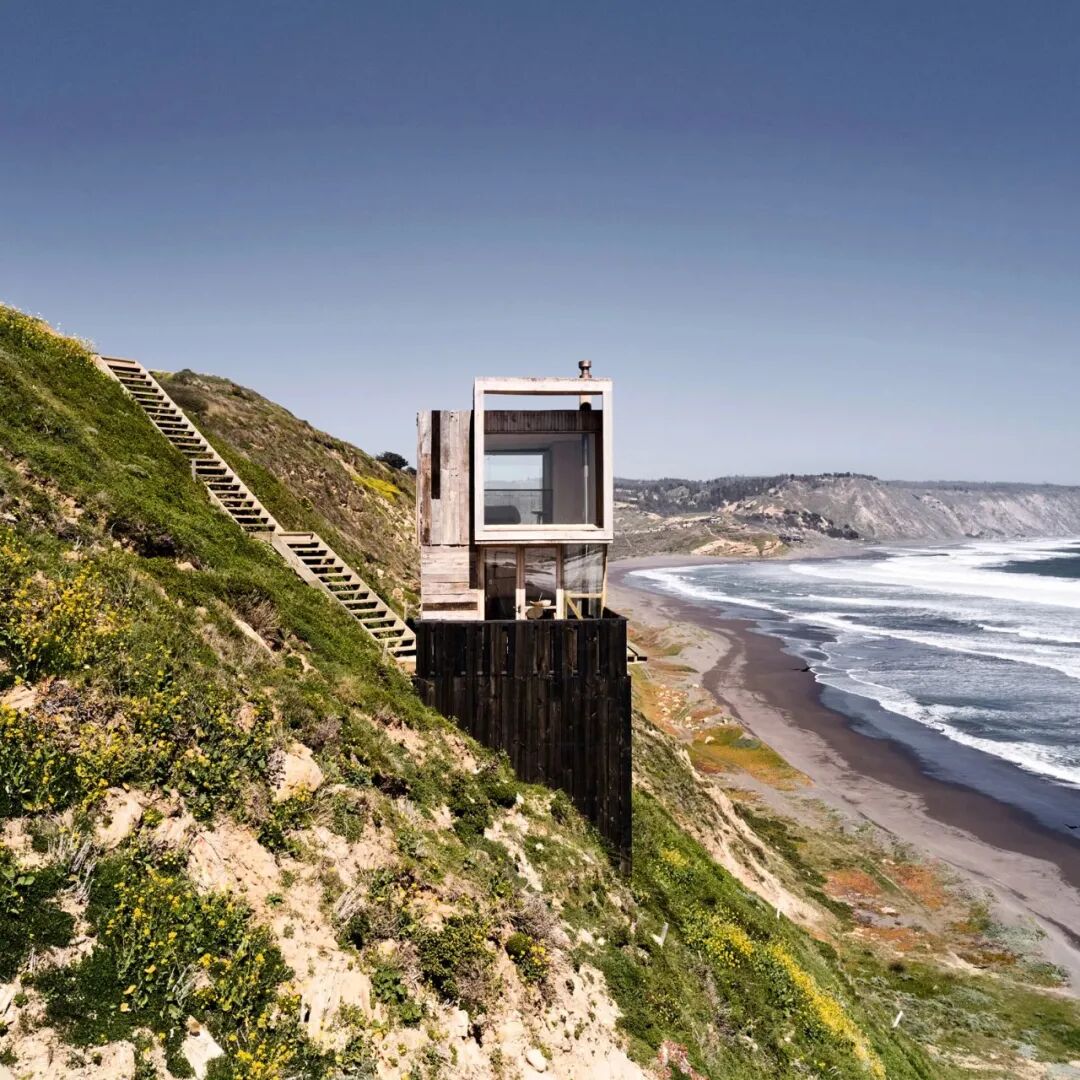 Croxatto 和 Opazo Architects 设计了两个极简主义的小屋,这个小屋使用的是可再生的橡木,位于智利纳维达的一座俯瞰太平洋的山丘上。像两个瞭望台一样,La Tagua 和 La Loica 位于纳维达 (Navidad) 陡峭山坡上,距离太平洋 80 米。