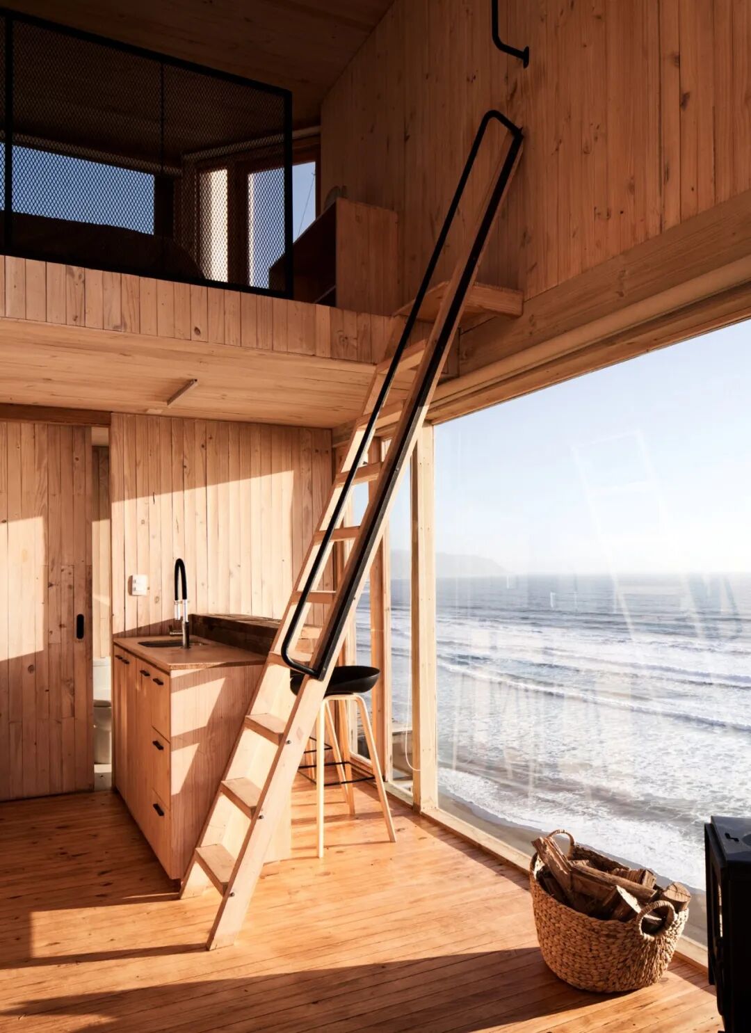 为了使小屋与沿海环境融为一体,Croxatto 和 Opazo Architects 将它们包裹在用石油处理过的再生橡木中,以防止咸味空气腐蚀橡木。这两个用作度假屋的小木屋旨在与它们所在的沿海景观融为一体。大窗户可俯瞰位于船舱下方 80 米处的海洋以及 突出海面的大岩石,岩石是海狮和其他动物的家园。