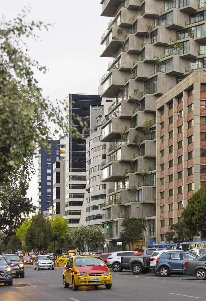 IQON 大楼被设计成一个垂直社区,作为邻近拉卡罗利纳公园的延伸,一直蔓延到建筑立面。这座大楼有一个明显的弧形拐角,周围环绕着沿建筑外围分布的露台,可以欣赏到公园、城市和皮钦查火山的景色。
