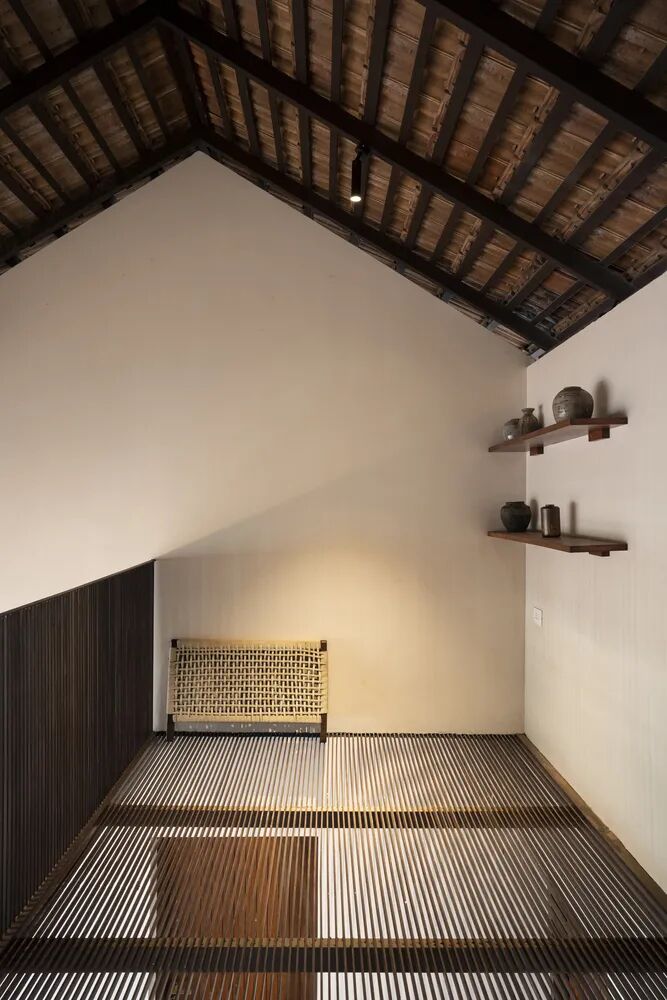 除了将屋面稻草垫层更换为木板以及少量隔断和开窗调整外,原始房屋几乎保留了原状。由于大量使用木材、麻绳等天然有机材质和近距离供应商,整个改造项目的碳足迹经估算接近于零。