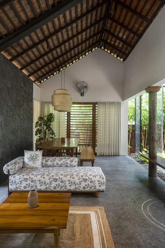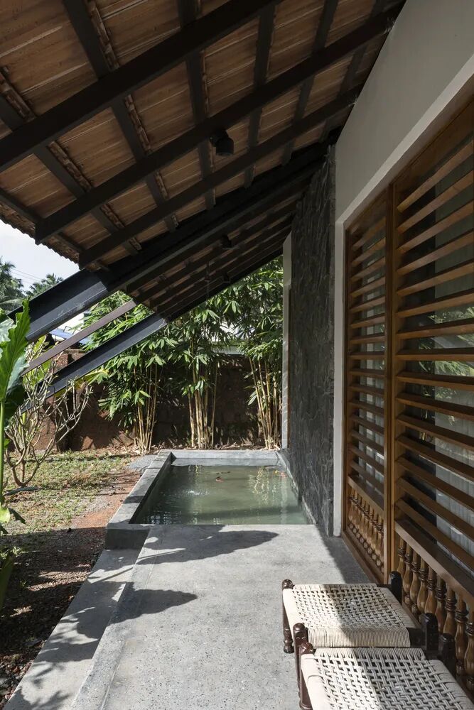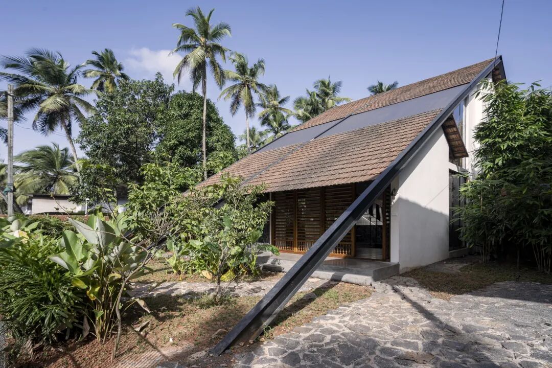 Noufal 之家位于 Kannur,在这是在北印度的一个小城镇。倾斜的屋顶,可以触碰的地面,使得建筑具有其独特的形态,同时大屋顶遮阳使得房屋免受大雨侵扰和刺眼的阳光照射。