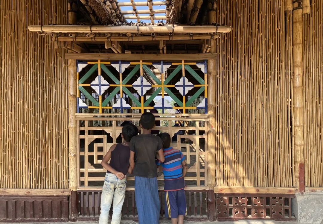 建筑师利用了当地的水椰叶(om pata/gol pata)构筑了屋檐、各种竹编工艺品、传统样式的门窗、家具以及其他刻有当地文化印记的物件,以此由内而外地打造了仅属于罗兴亚人的建筑。