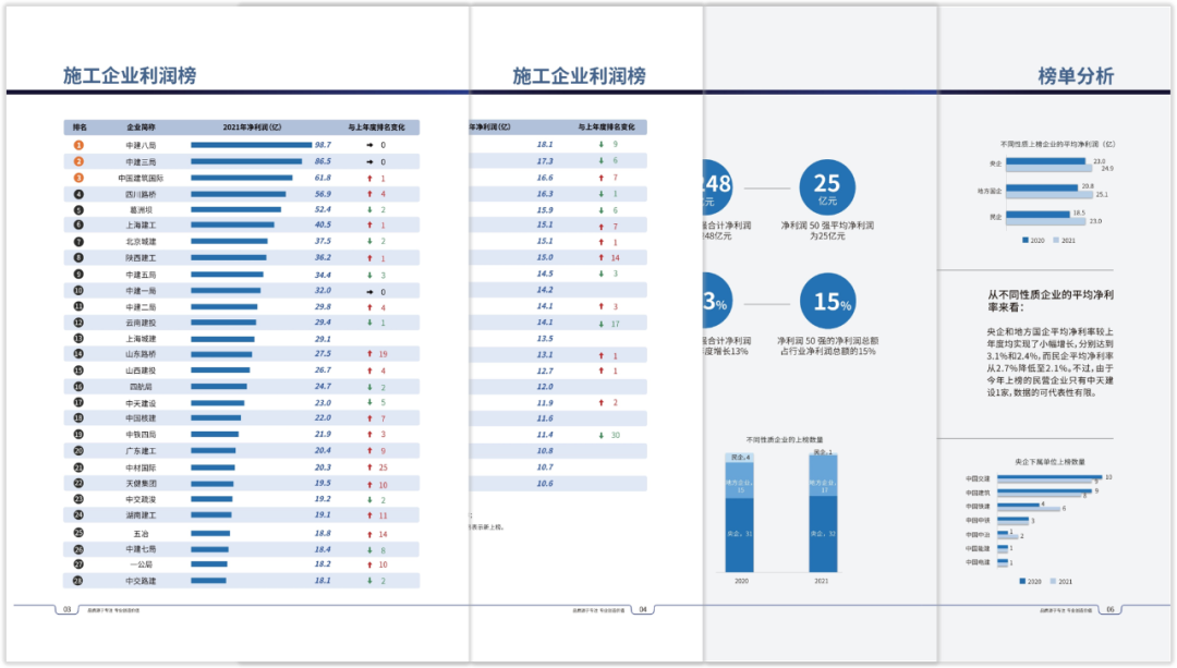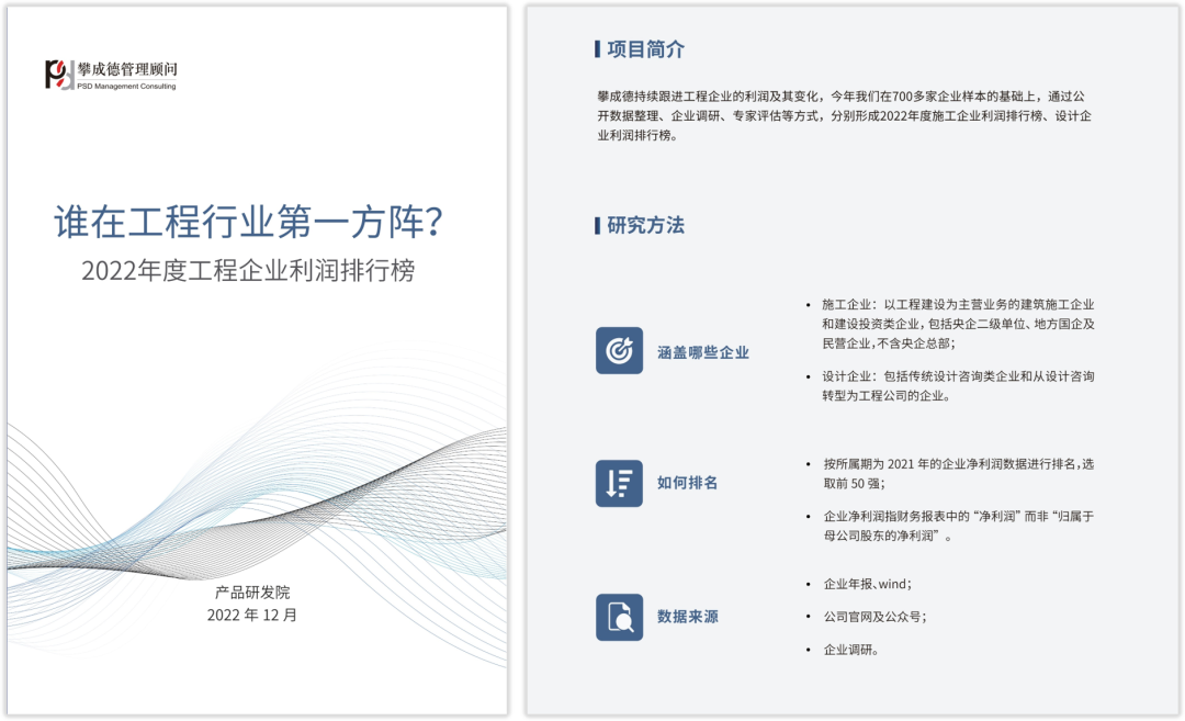五年前,有行业人士建议攀成德应该做一个有特色的工程行业利润榜单。2021年我们发布施工企业、设计企业的利润排行榜,引起了行业同仁的广泛关注,也给了我们继续前行的力量。