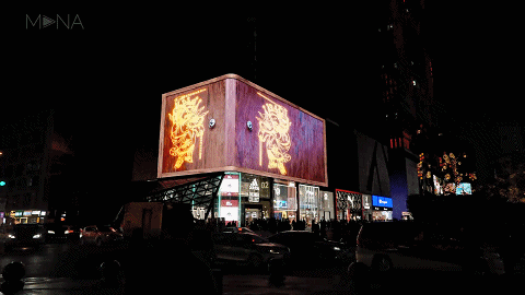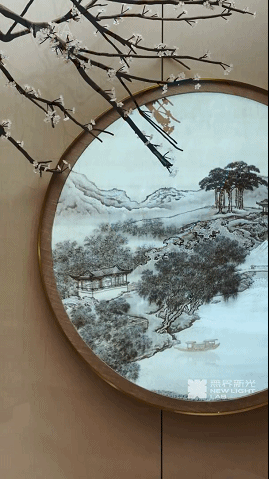 我们将投影与山水画结合,将瘦西湖两岸的亭台楼阁、名园胜景置于更加鲜活的春夏秋冬四季的大自然影像中,把扬州当时“两堤花柳全依水,一路楼台直到山”的繁荣景象形象地展现在观者面前。给人一种入眼观之的雅气和内敛的韵味。