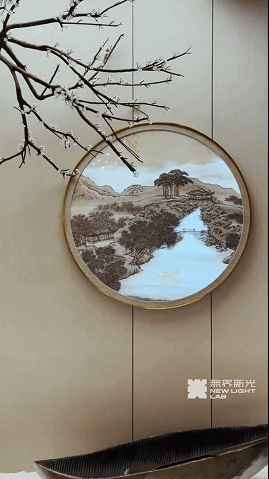 無界新光将画作进行了全新的影像艺术创作,来重现了长江沿岸渔村初雪的情景,为渔人卫寒捕鱼,骑驴者缩瑟前进,江南初冬渔民和旅人的生活景象,增添一分灵动与趣味。