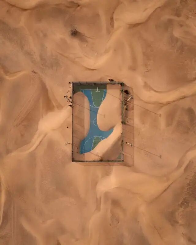这张照片是梦想成真的结果:沙漠与海洋的相遇。随着无人机爬得更高,摄影师注意到了一种特殊的气氛,光线突出了这些流入南大西洋的沙丘的美味形状。