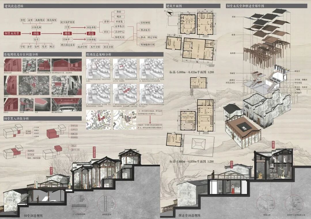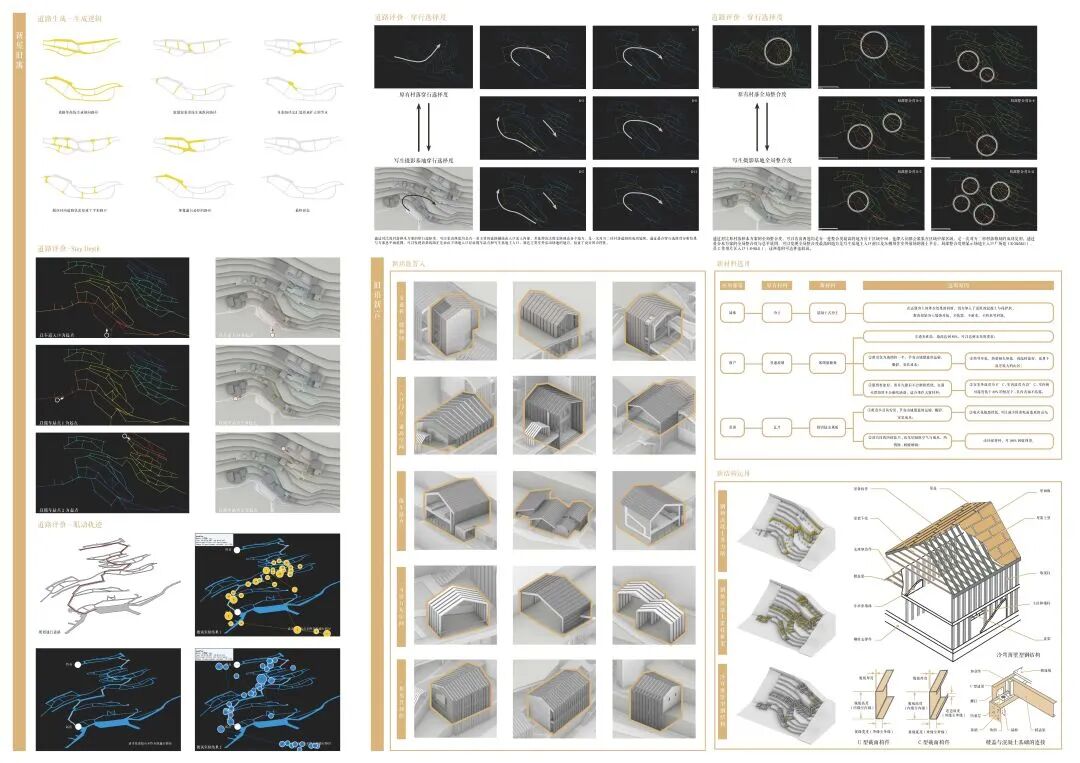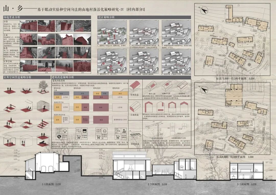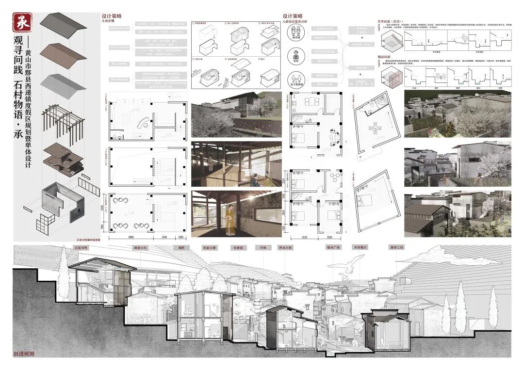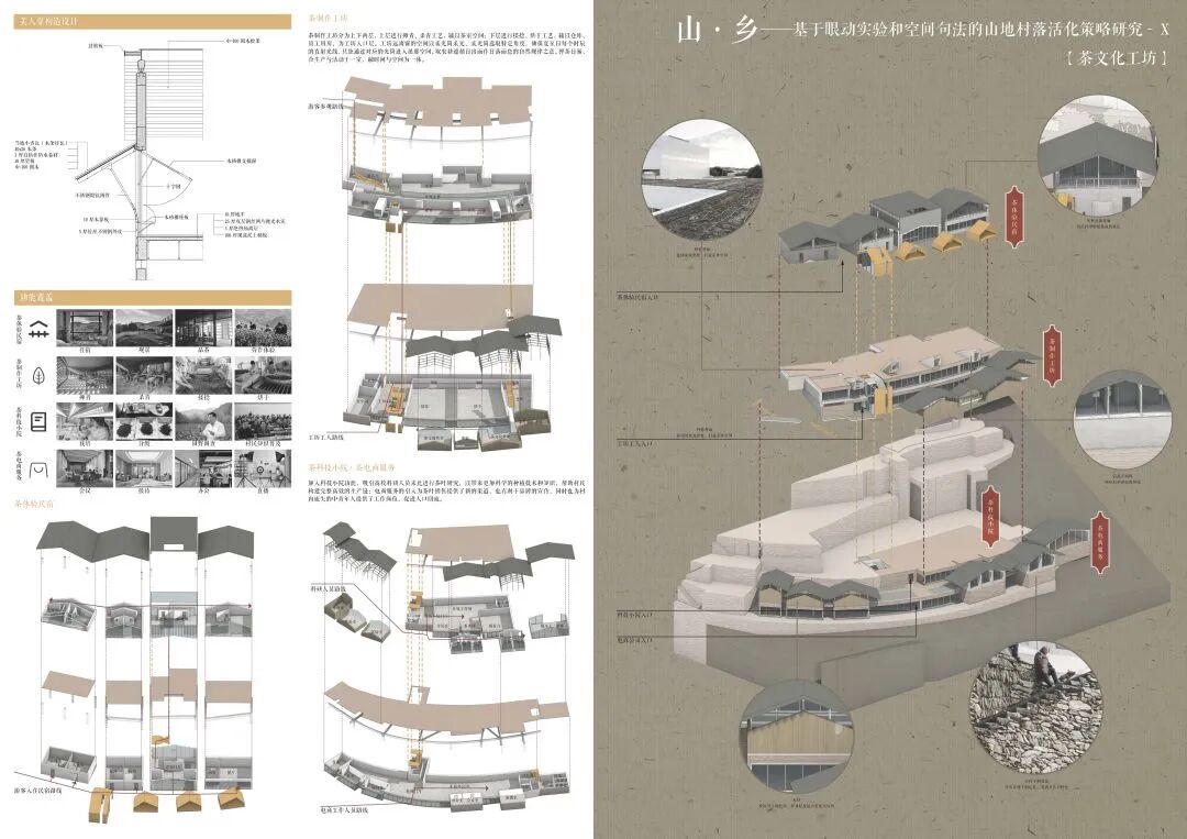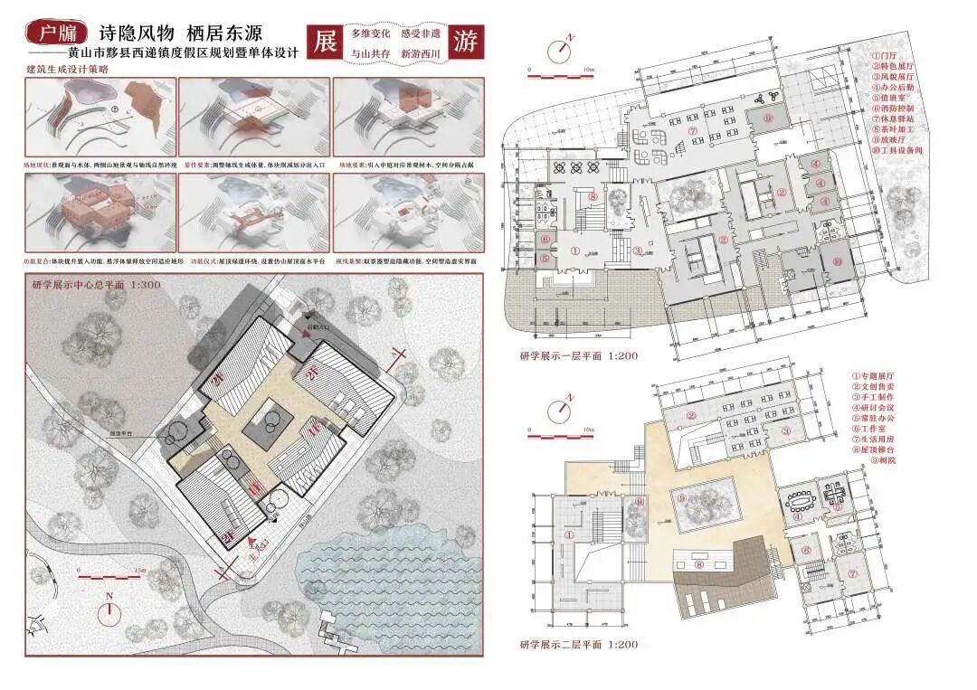 万二村位于黄山市歙县昌溪乡境内的山坡之上,村内建筑延山势跌落延展,青石板路蜿蜒辗转,石砌地基古朴坚实,现存大量的文化历史,被誉为“徽州布达拉宫”。但村中缺乏产业经济,人口流失严重,村落记忆难以传承,现存状况不容乐观。为活化传承古徽州地区的传统村落,再度盘活其得天独厚的历史、文化、生态资源,本设计对万二村重新规划设计。设计中利用眼动追踪和空间句法的方法对村落现状进行分析指导规划设计,同时进行设计后评估,以求较为客观地切实解决村落现存问题。在建筑设计方面,于村内采用建筑针灸的策略,以点带面盘活整个村落;于村外加建摄影写生基地和茶工坊,以求为村民打造更为系统的自有产业。