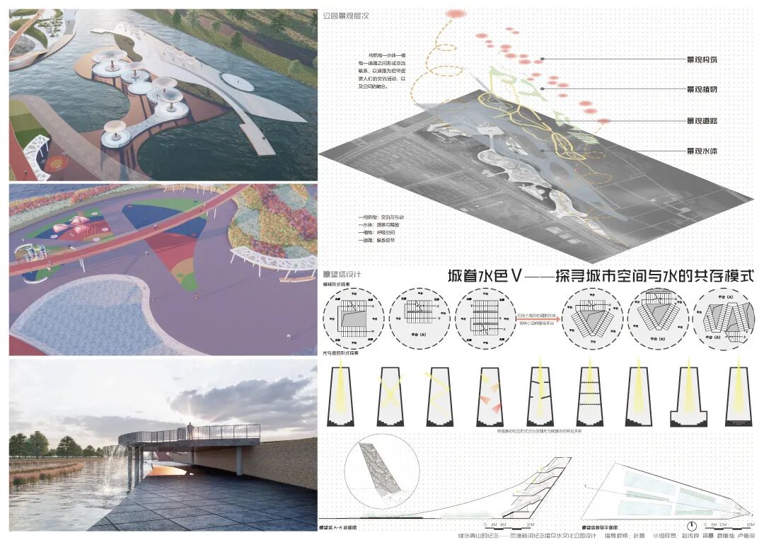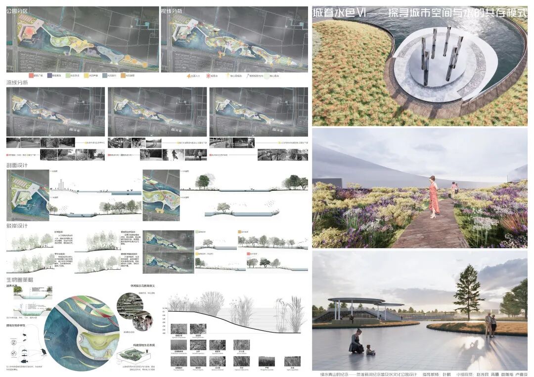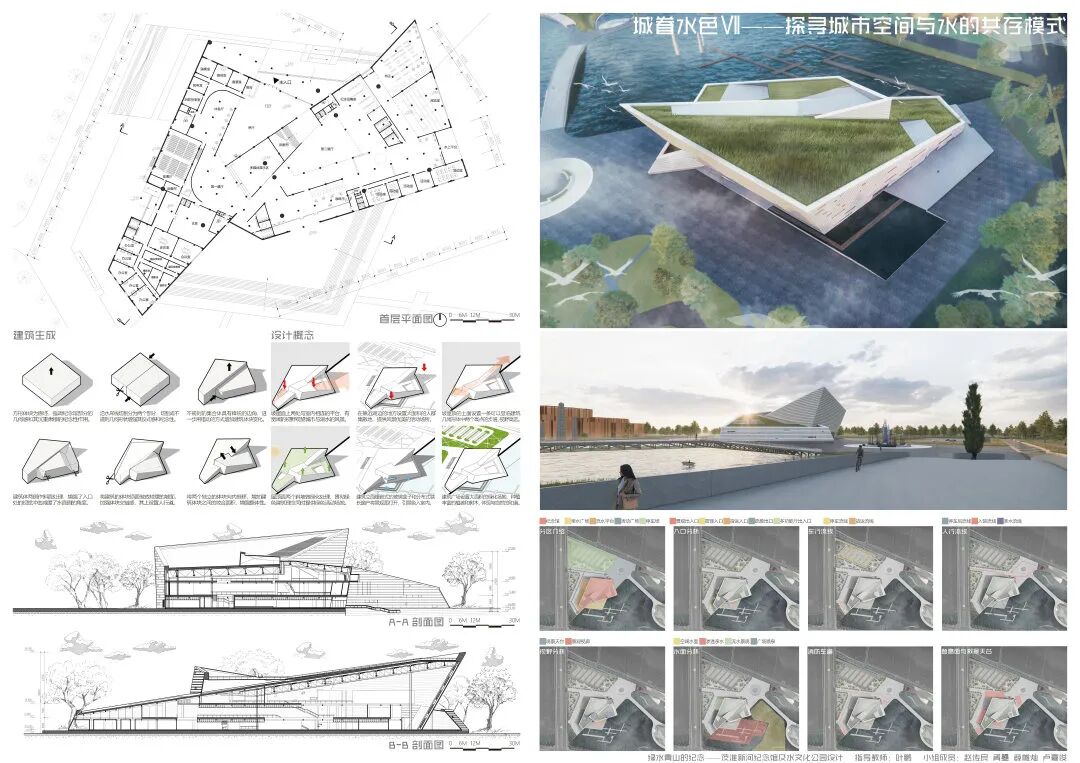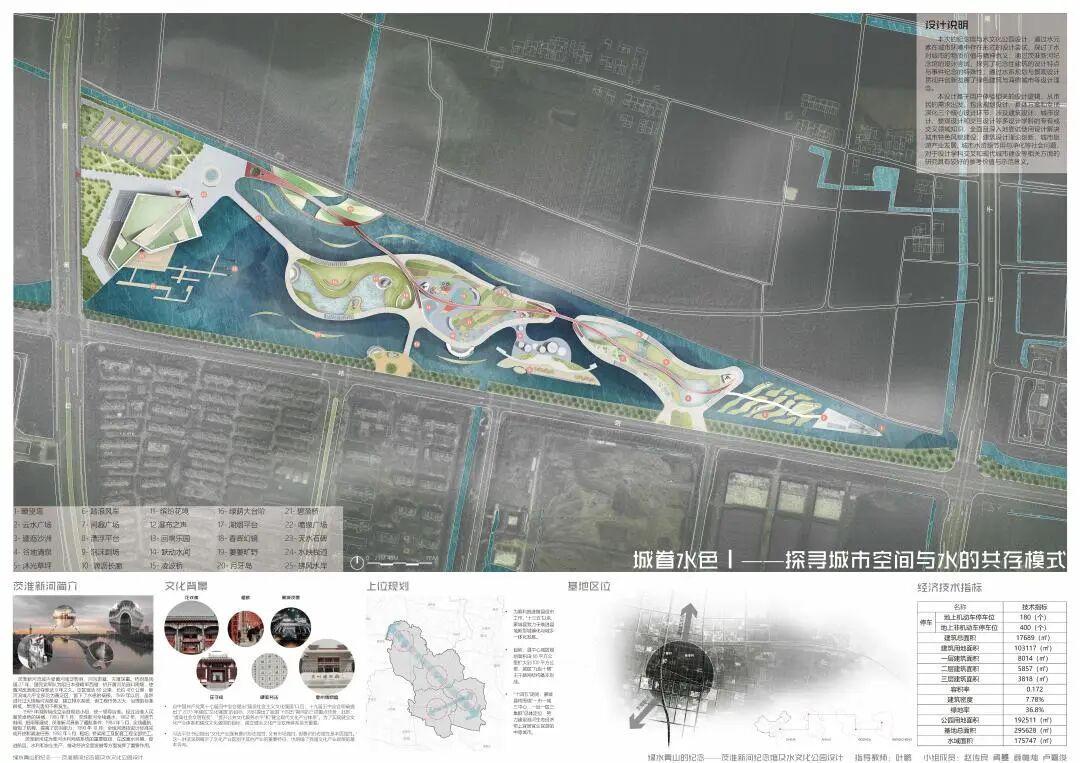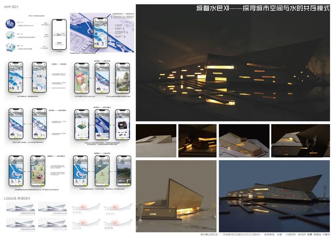 本次的纪念馆与水文化公园设计,通过水元素在城市环境中存在形式的设计尝试,探讨了水对城市的物质价值与精神意义;通过茨淮新河纪念馆的设计尝试,探究了纪念性建筑的设计特点与事件纪念的特殊性;通过水系规划与景观设计贯彻并创新发展了绿色建筑与海绵城市等设计理念。本设计基于用户体验相关的设计逻辑,从市民的需求出发,包含规划设计、具体方案和专项深化三个核心设计环节,涉及建筑设计、城市设计、景观设计和交互设计等多设计学科的专有或交叉领域知识,全面且深入地尝试使用设计解决城市特色风貌建设、建筑设计理论创新、城市旅游产业发展、城市水资源节用与净化等社会问题,对于设计学科交叉和现代城市建设等相关方面的研究具有较好的参考价值与示范意义。
