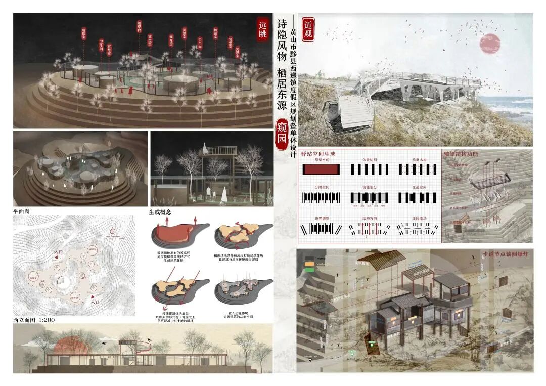 本次毕业设计的专题,不论从城市空间出发,逐步聚焦于建筑环境,还是从单元为起点,思考建筑与概念的复杂关系。有的偏重于乡村振兴发展,在本地块规划设计,服务整个村落区域专注于文化遗产再生。还有的打破传统放眼世界展望建筑的未来面貌。围绕这些课题,同学们深入研究概念与风格、空间与环境、结构与构造等主要问题,体现了我们对于毕业设计教学方法性、实践性和创新性的关注视角。作为本科专业学习的最后一个环节,是毕业生五年专业学习的总结,是对学生完成本科学习的专业素质、能力和知识的一次综合演练,也是对专业教学质量的一次集中检验。