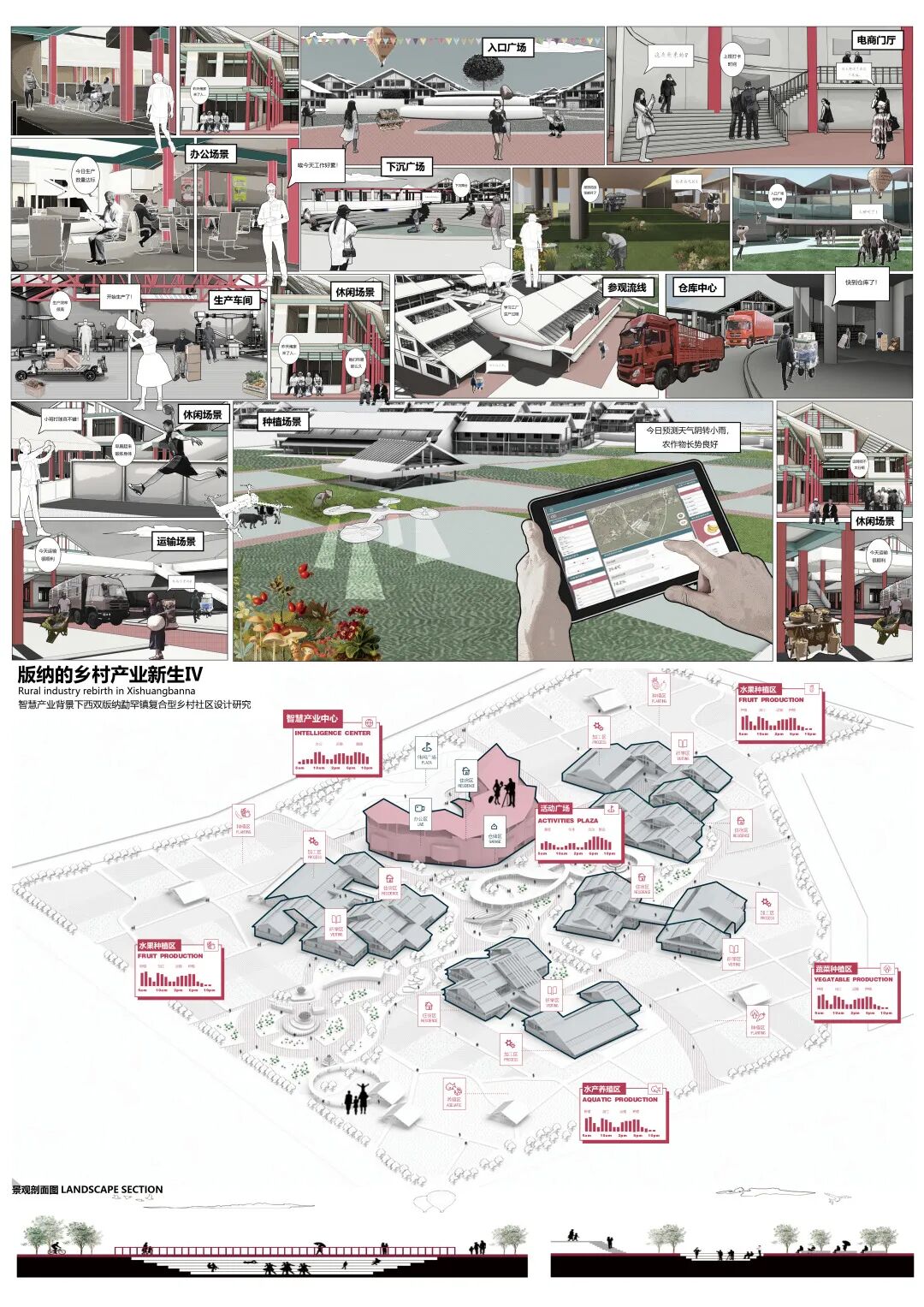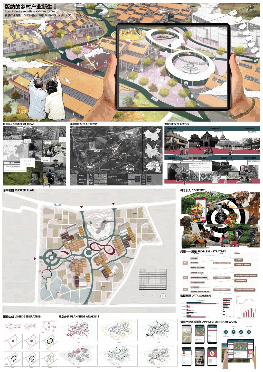 设计选址位于西双版纳勐罕镇,该地地处偏远正遭受农产品滞销的困境,同时农业基础设施落后,设计主要目标如何改善当地农民的生活。选择农民的生活作为研究对象,在智慧农业的背景下,以生产为主,设计复合型的乡村社区,利用大数据平台监管农业、电商销售等手段,解决农民现有的问题。人群上除当地农民外,希望吸引相关技术人才回乡,并为高校师生提供验研究学习基地等,为多种人群提供交流互动的场所。同时考虑当地的传统文化,如何复兴傣族村落的文化精神也是本次设计的重要难点。