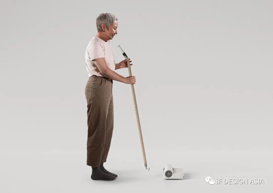 TRIO 是一款三合一吸尘器,为多代同堂家庭提供量身定制的用户体验。它借助磁力作用在装置上连接一根木杆,兼具自动吸尘器的舒适性以及传统扫帚的灵活性。TRIO 的设计灵感来源于北欧简约风格,采用简约的视觉外形,外观设计能够无缝融入多种室内装修。智能传感器帮助用户实现了包容性的互动方法,比如叫回自主吸尘器,把它安装在木杆上进行手动互动。
