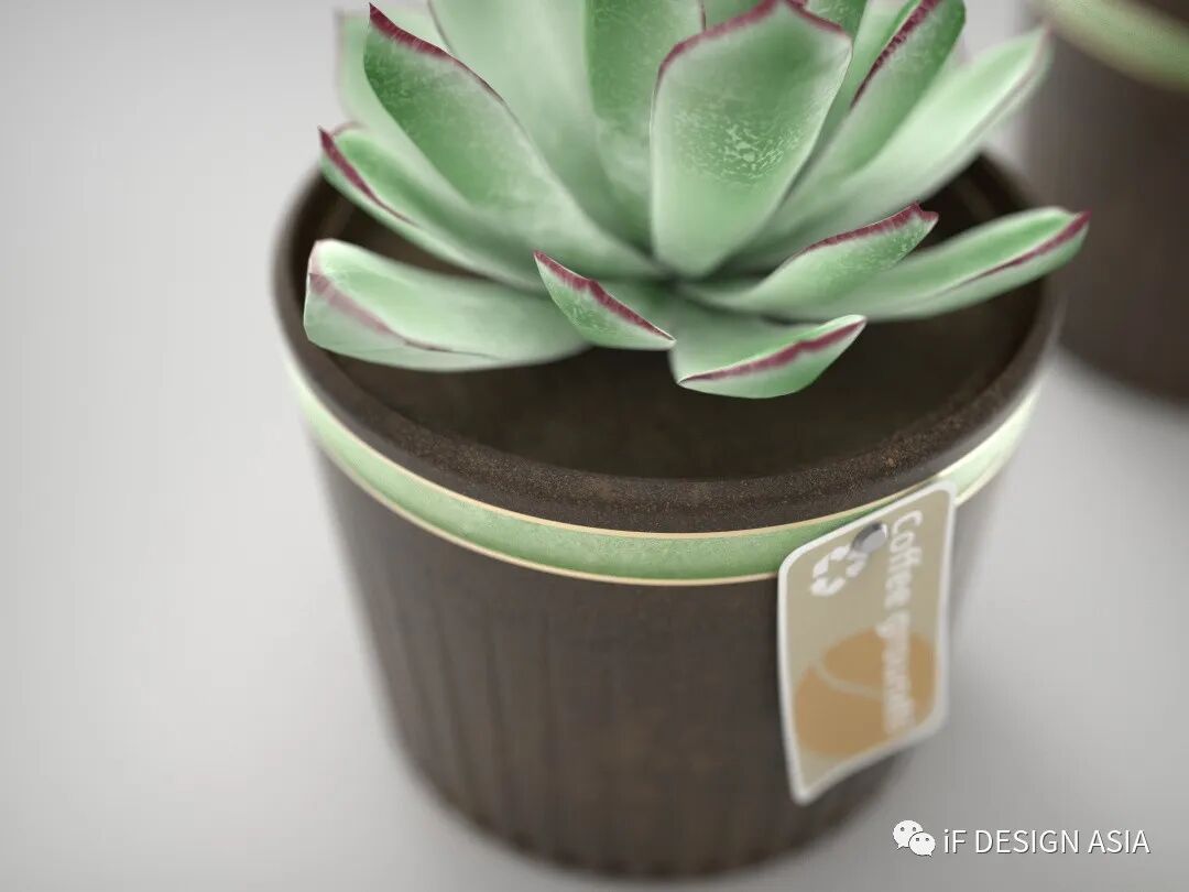 这是一款免移植花盆,利用咖啡渣的可降解性,采用嵌套式设计。随着植物的生长,当小盆达到临界容量时,只需把它嵌套在大盆中,内部的小盆在水和植物根系的作用下,会逐渐降解为营养物质。免移植花盆适合从小植物到生长成熟的整个种植过程。