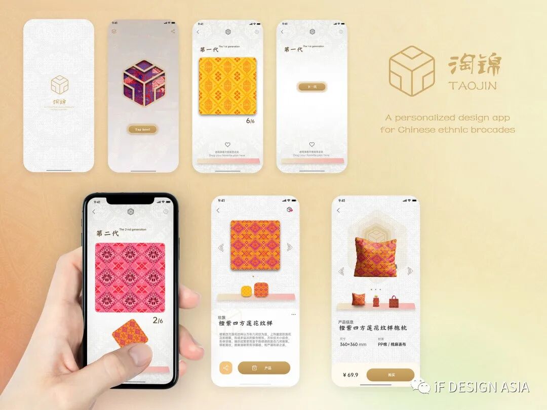 TaoJin 是一款个性化的中国民族织锦设计应用程序。它融合了交互式遗传算法,允许用户快速获取民族图案,并根据其个性化图案购买手工艺品。该设计可以激发人们更加关注传统文化。TaoJin 把消费者、设计师和手工艺人联系起来。它以友好、有趣的方式促进传统手工艺的发展。