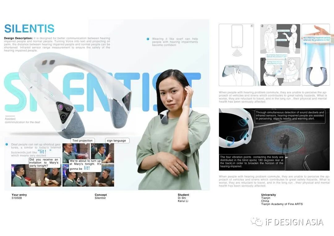 “该设计方案非常巧妙,以符合人体工学的实用方式使用新型技术,从而改善沟通,克服沟通障碍。它的展示和讲述方式非常出色。祝贺你成功入围!”
