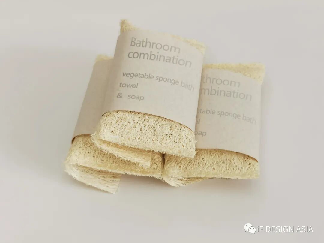 包装废弃物是可持续设计面临的最大挑战之一。即使是具有很强可持续性的产品,在运输和包装过程中也经常产生大量的废弃物。丝瓜络是 100% 天然、可生物降解的海绵产品,是一种结实、有效的身体皂包装材料。设计师没有使用一次性包装盒包装产品,而是使用了一种可降解的产品,增加了实用性和美学价值。
