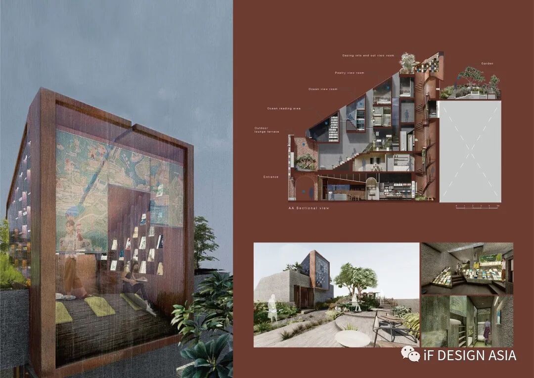 Transformation and Rebirth of Zihli Bookstore 回应了传统书店被连锁书店和网上书店取代的问题。Zihli Bookstore 与台湾基隆的历史有很深的联系。该项目的设计理念再利用闲置空间,同时与当地故事、环境特点和阅读体验结合起来。设计师通过营造空间氛围,突出了传统书店与当地共生的特点。