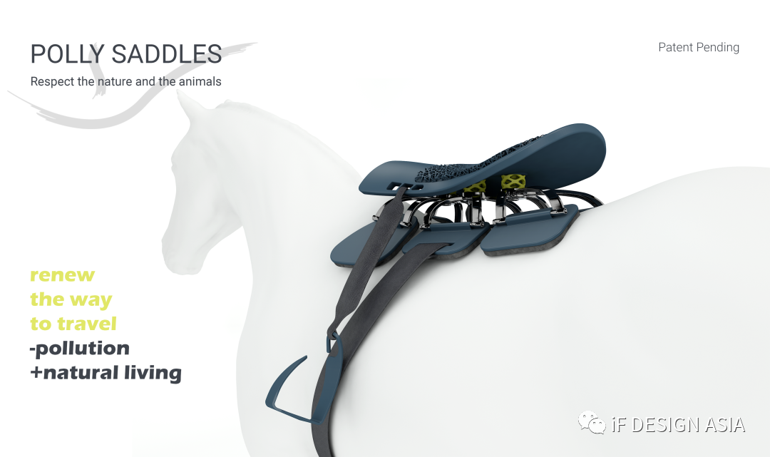 POLLY SADDLE 是一款符合人体工学的创新、革命性的马鞍,其设计完全适合不同马匹的体型。它的独特之处在于,它遵守马匹的自然运动,没有产生任何束缚。戴上 Polly Saddle 骑马表示对自然和自然生活的热爱,鼓励与动物进行友好互动。Polly Saddle 代表着对马匹的尊重,它是一个科学的优秀设计方案,解决了骑马给马匹带来的痛苦。它是人类科学应用于动物福利方面的一个象征,鼓励人们追求可持续发展的生活方式。