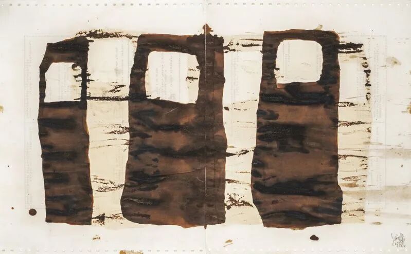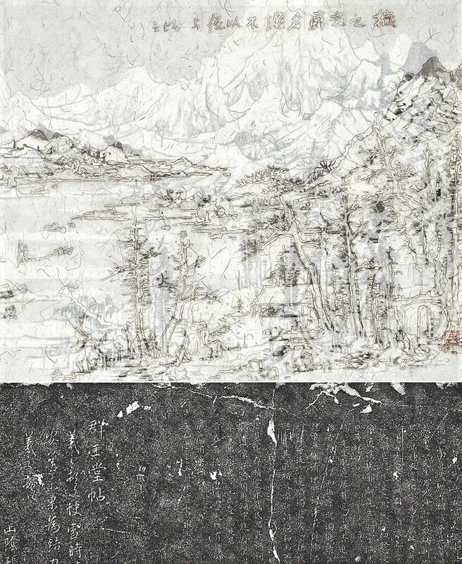 Chinese ink with burn marks on layered rice paper, stele rubbing of Qing Dynasty
