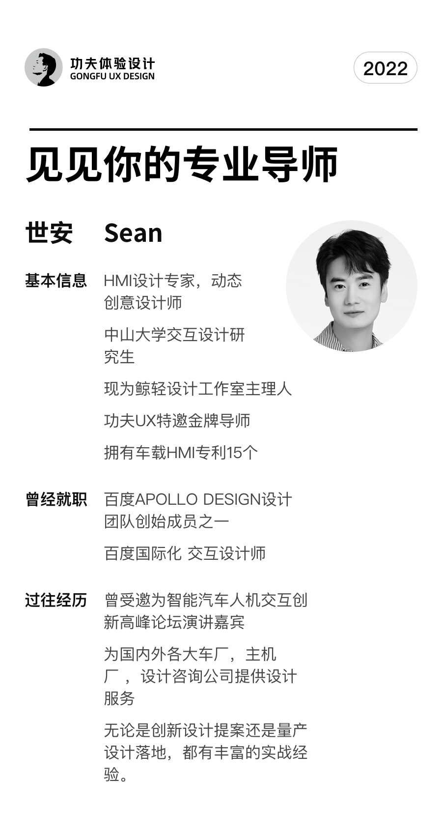 深耕车载HMI设计多年,也是国内第一梯队HMI设计师,下面先来看看这次课程的导师。