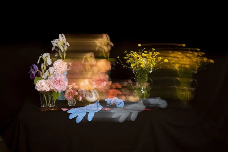 Villa Polissena flowers with blue glove, 2020(Rolf Sachs)
