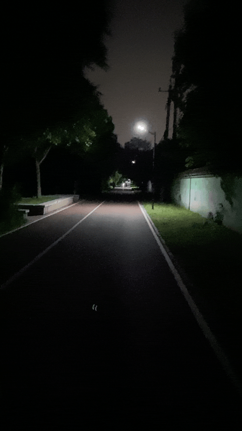 怕不够「惊魂」,我特意选了晚上9点后、人迹罕至、路灯时亮时不亮的一段跑道。
