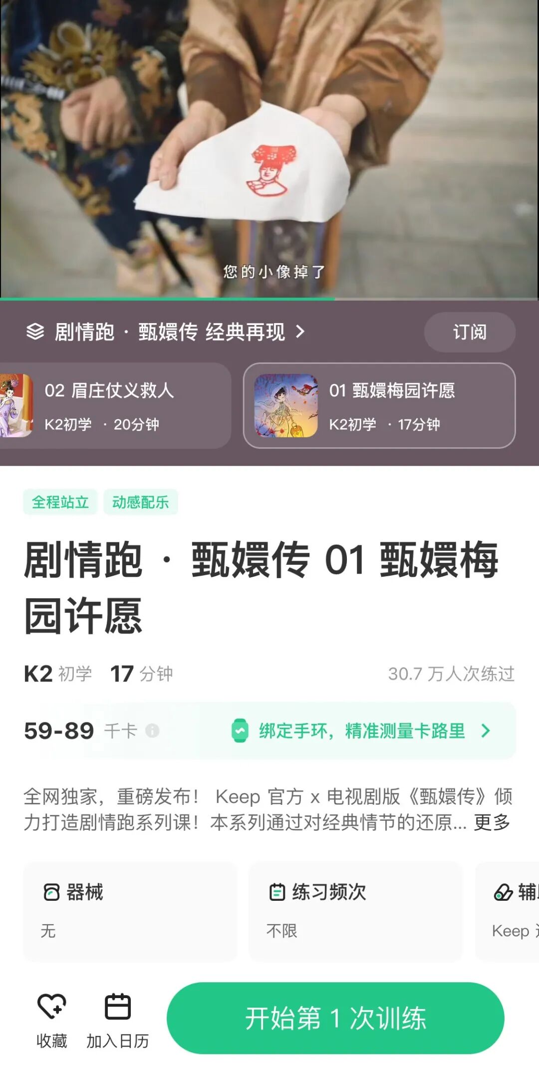 我选了甄嬛传剧情跑01:甄嬛梅园许愿。难度是k2初学,很适合我这种高中毕业后就没跑过步的菜鸡。