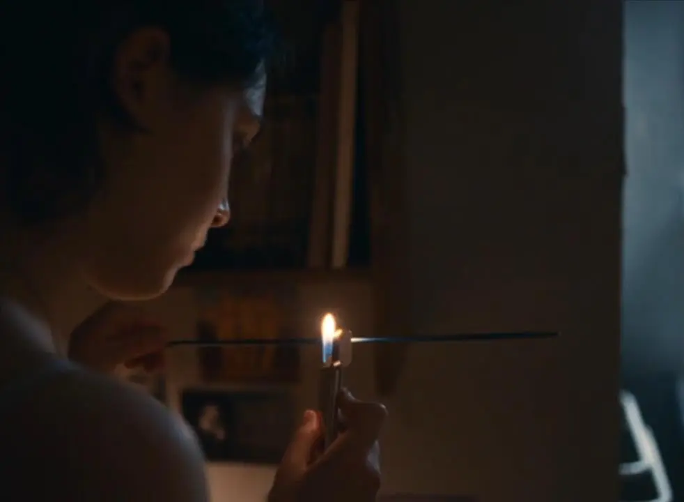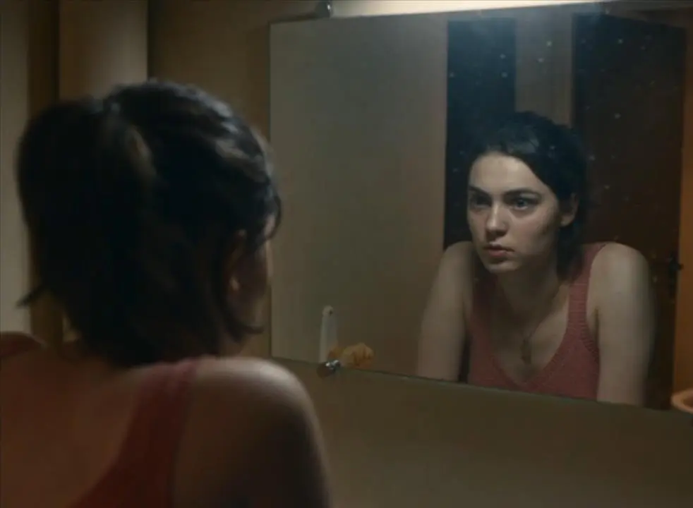 镜头对少女忍耐巨大痛苦的表情进行漫长特写后,忽然间就转换到了第二天:安妮假装无事发生,憔悴但平静地坐在课堂上。