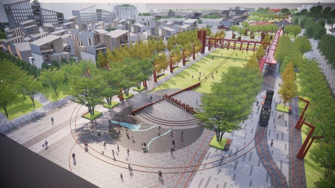 设计地块以上位规划片区城市设计为依据,延续片区绿心及市民乐活参与的总体布局,结合周边地块的性质,力求将其打造成片区生态绿核及市民乐聚的休闲公园,体现出生态基地、城市客厅、时尚舞台、市民乐活的景观特性。