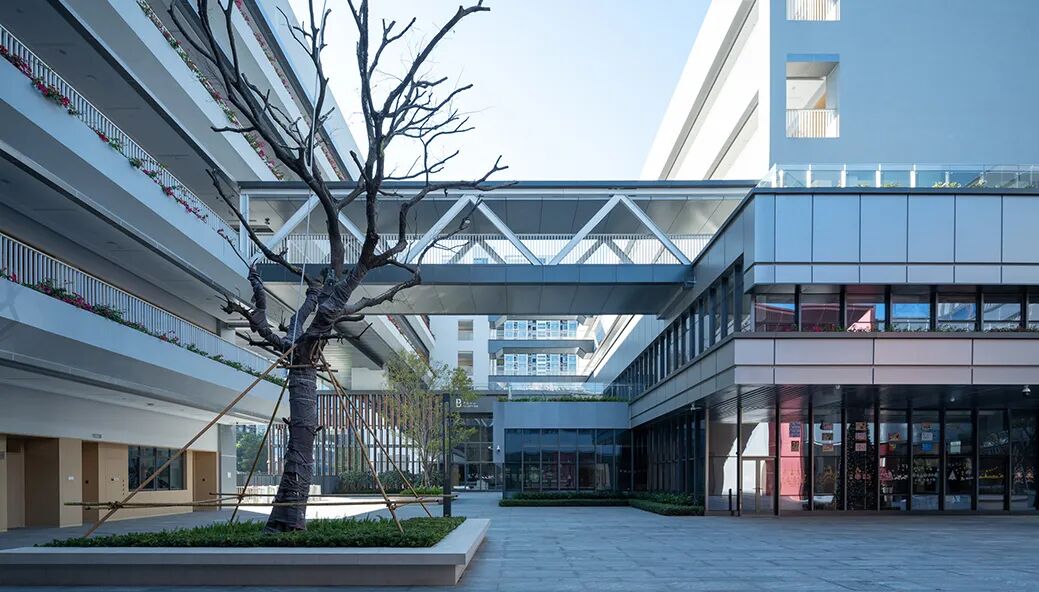坎特伯雷国王学校将英国坎特伯雷国王学校的优良传统和优异的学术成就,与中国本土教育相结合,为学生们提供优质的21 世纪教育。景观设计以打造一个“雨林叠园”为理念,科学结合有机,实用结合诗意,营造林上、林间、林下等多层生态复合空间。