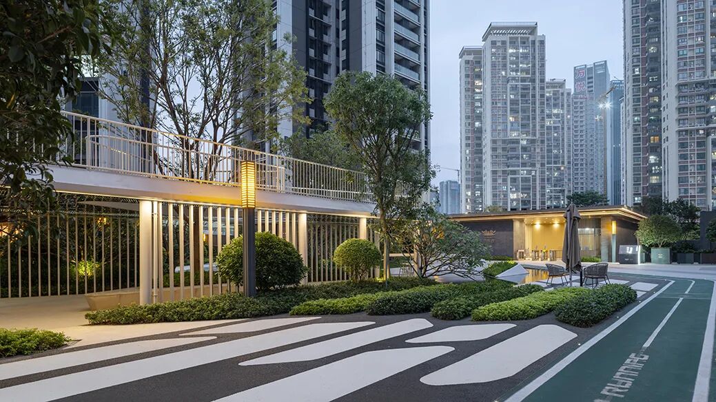 景观设计延续建筑风格,结合城市风貌,引领现代人居,后工业时代的精工细作,打造城市里的森林花园,享受优雅轻奢的惬意生活,简约、精致、绿色、雅奢。于喧嚣的城市之中,紧贴生活场景感,回归生活的本质,营造多维渗透式的人居体验,为未来理想社区生活提供更多的可能性。