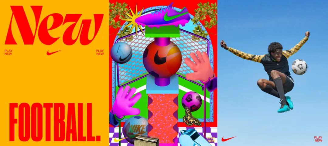 Chris 认为,颜色和活力也将在 2022 年的排版趋势中发挥重要作用,引用最近的耐克“Play New”广告。