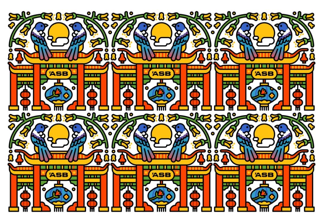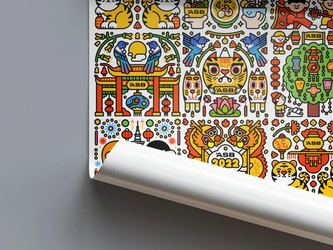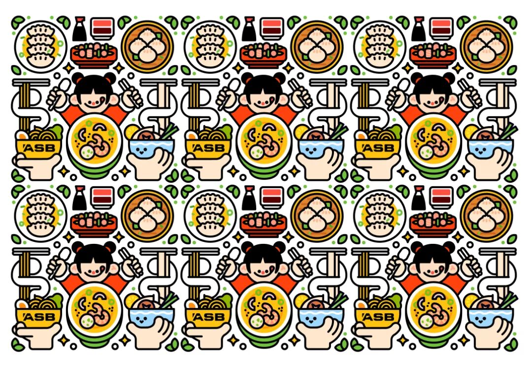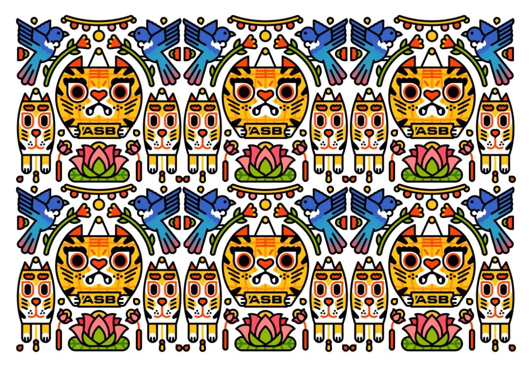 主视觉画面被用于各种物料周边以及最重要的是,画面可以通过不断地复制重复,设计成平铺花纹使用在现场的桌布和旗帜上。