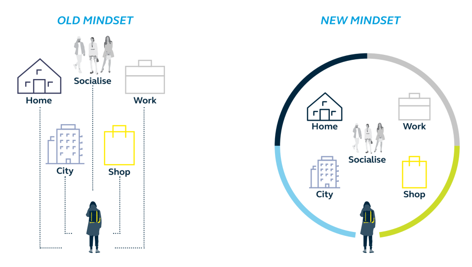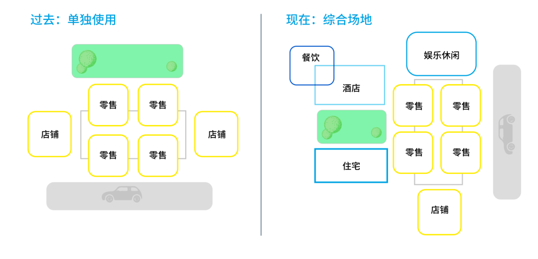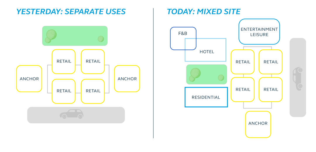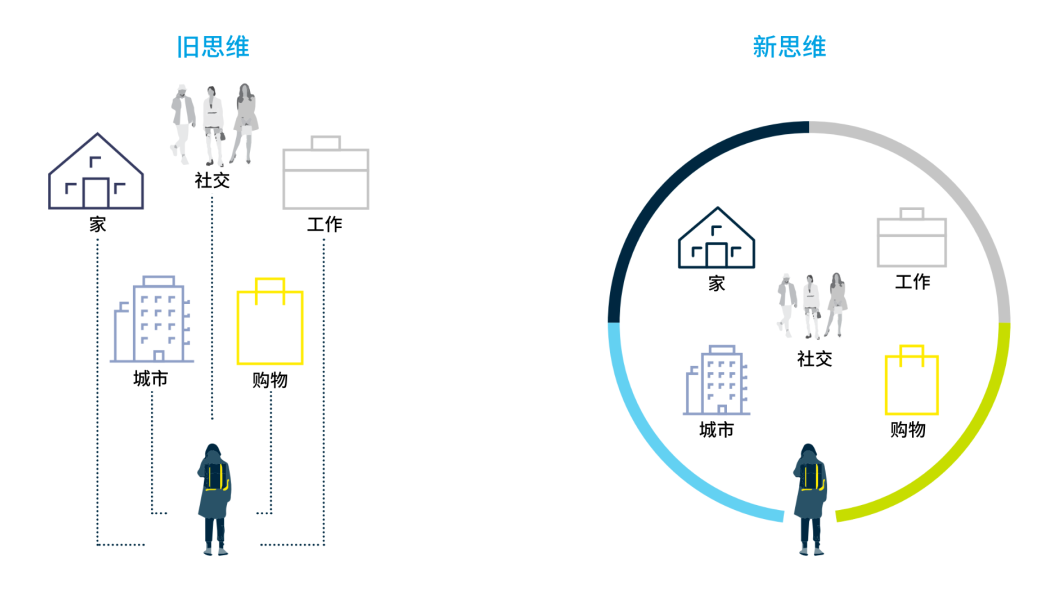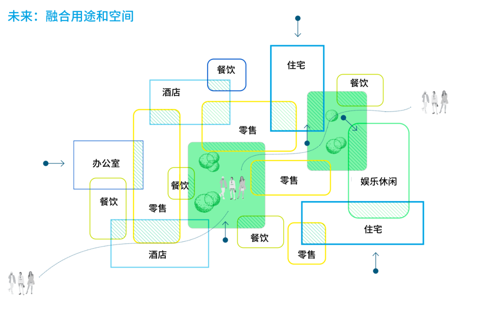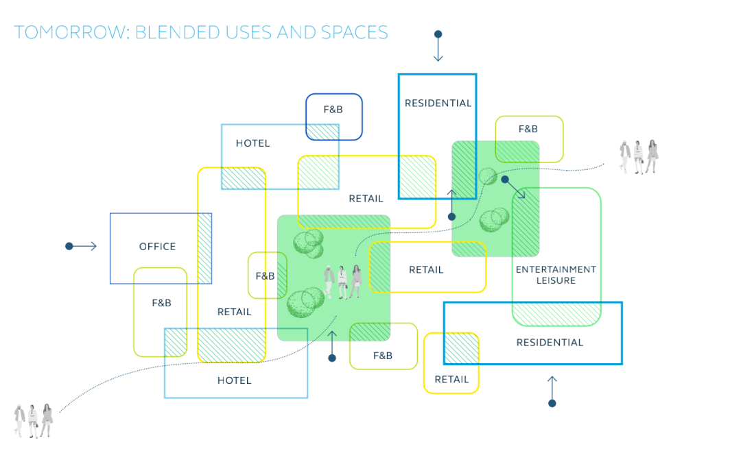 随着地产业向更具响应性和灵活性的服务业转变,融合空间正在成为一种新的“常态”。这意味着同质化的购物中心将无法生存。固定场所将被分割成多个空间,让位于更加灵活的经营模式,其中融合了住宅、酒店、办公空间、医疗、教育和交通等各项服务,帮助零售商吸引新的既有受众。